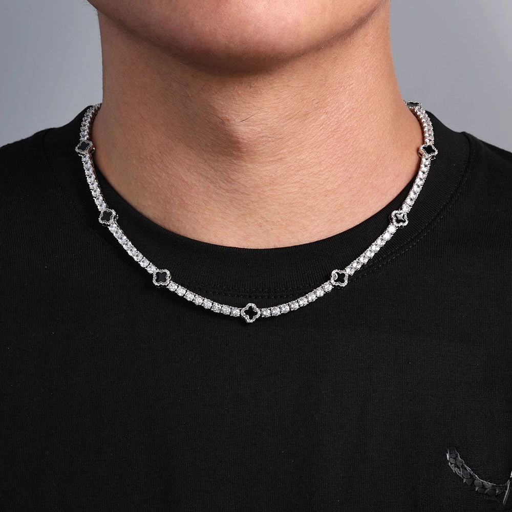 4mm Silver Iced Out Four Leaf Clover Tennis Chain